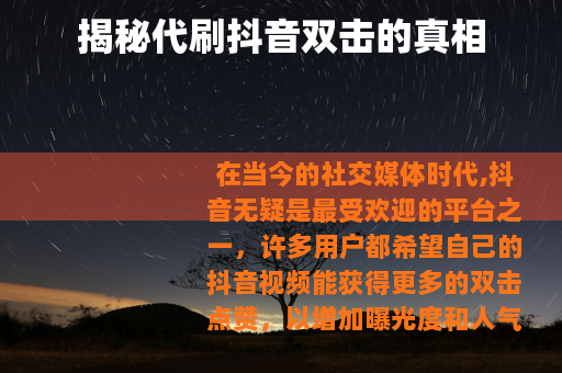 在当今的社交媒体时代,抖音无疑是最受欢迎的平台之一,许多用户都希望自己的抖音视频能获得更多的双击点赞,以增加曝光度和人气,市场上出现了所谓的代刷秒刷抖音双击的服务。