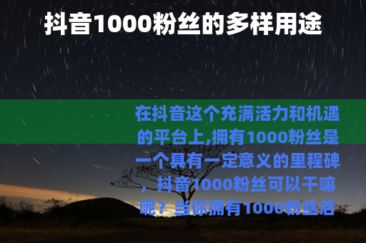 在抖音这个充满活力和机遇的平台上,拥有1000粉丝是一个具有一定意义的里程碑,抖音1000粉丝可以干嘛呢?