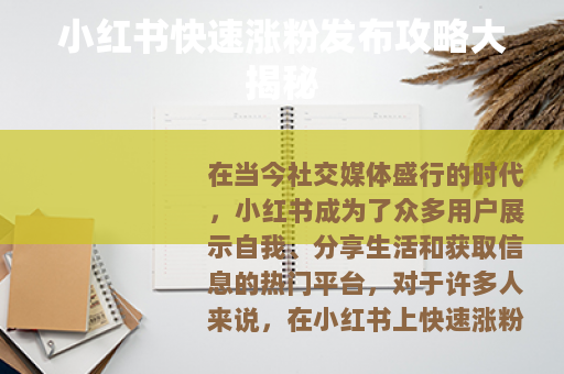 在当今社交媒体盛行的时代,小红书成为了众多用户展示自我、分享生活和获取信息的热门平台,对于许多人来说,在小红书上快速涨粉是一个极具吸引力的目标,那么如何实现小红书的快速涨粉呢?以下是一些实用的发布攻略。 创作是关键**