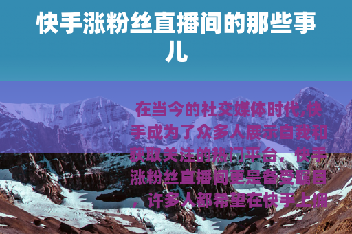 在当今的社交媒体时代,快手成为了众多人展示自我和获取关注的热门平台,快手涨粉丝直播间更是备受瞩目。