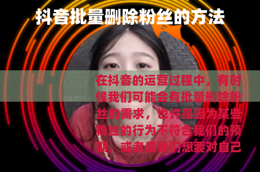 在抖音的运营过程中,有时候我们可能会有批量删除粉丝的需求,也许是因为某些粉丝的行为不符合我们的预期,或者是我们想要对自己的粉丝群体进行一次清理和优化,抖音怎么批量删除粉丝呢?