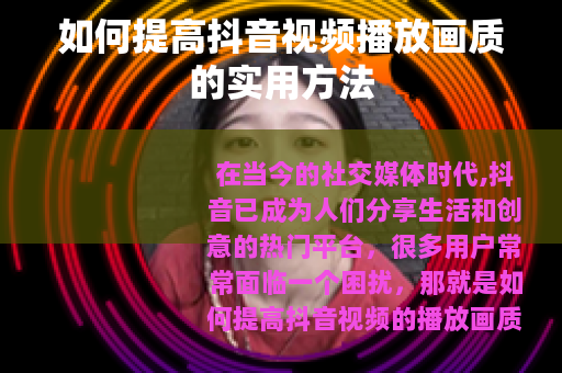 在当今的社交媒体时代,抖音已成为人们分享生活和创意的热门平台,很多用户常常面临一个困扰,那就是如何提高抖音视频的播放画质,让自己的作品更加清晰、吸引人,以下是一些有效的方法,可以帮助你提升抖音视频的播放画质。