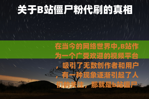 在当今的网络世界中,B站作为一个广受欢迎的视频平台,吸引了无数创作者和用户,有一种现象逐渐引起了人们的关注,那就是b站僵尸粉代刷。