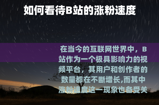 在当今的互联网世界中,B站作为一个极具影响力的视频平台,其用户和创作者的数量都在不断增长,而其中涨粉速度这一现象也备受关注。