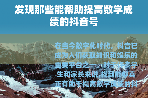 在当今数字化时代,抖音已成为人们获取知识和娱乐的重要平台之一,对于许多学生和家长来说,找到能够真正有助于提高数学成绩的抖音号无疑是一件非常有价值的事情。