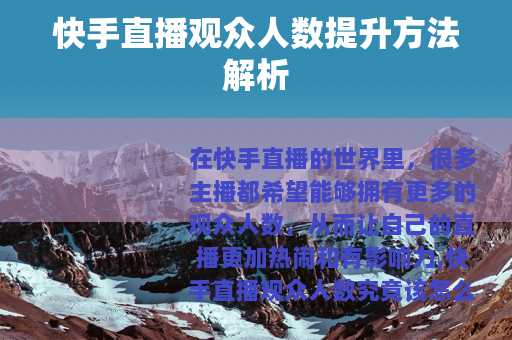 在快手直播的世界里,很多主播都希望能够拥有更多的观众人数,从而让自己的直播更加热闹和有影响力,快手直播观众人数究竟该怎么提升呢?