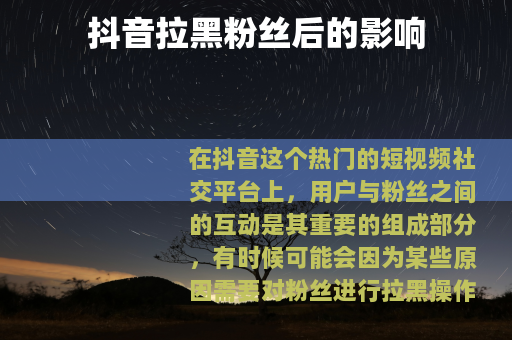 在抖音这个热门的短视频社交平台上,用户与粉丝之间的互动是其重要的组成部分,有时候可能会因为某些原因需要对粉丝进行拉黑操作,抖音拉黑粉丝会怎么样呢?