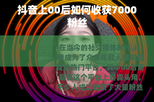 在当今的社交媒体时代,抖音成为了众多年轻人展现自我的热门平台,其中00后更是在这个平台上崭露头角,不少人成功收获了大量粉丝,我们就来聊聊抖音上00后收获7000粉丝的那些事儿。