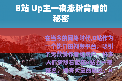 在当今的网络时代,B站作为一个热门的视频平台,吸引了无数创作者和用户,许多人都梦想着能在B站上一夜成名,拥有大量的粉丝,B站 Up主一夜究竟能涨多少粉丝呢?