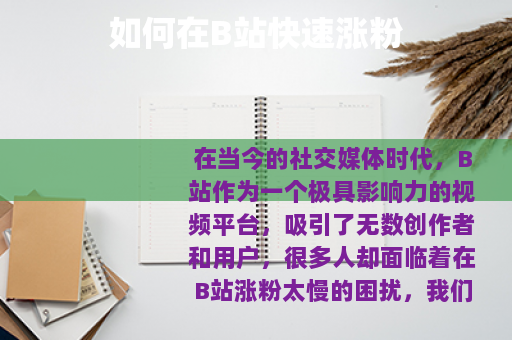 在当今的社交媒体时代,B站作为一个极具影响力的视频平台,吸引了无数创作者和用户,很多人却面临着在B站涨粉太慢的困扰,我们就来一起探讨一下如何在B站实现快速涨粉。 质量是关键,要想吸引更多的粉丝,就必须提供有价值、有趣、有特色的视频内容,这意味着你需要深入了解自己的目标受众,知道他们感兴趣的话题和喜好,从而制作出符合他们口味的视频,无论是搞笑、知识科普、美食制作还是游戏攻略,只要你能在自己擅长的领域做到极致,就一定能吸引到一批忠实的粉丝。