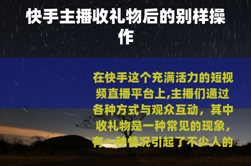 在快手这个充满活力的短视频直播平台上,主播们通过各种方式与观众互动,其中收礼物是一种常见的现象,有一种情况引起了不少人的关注,那就是部分快手主播在收到礼物后,会将这些礼物对应的虚拟货币刷给别人。