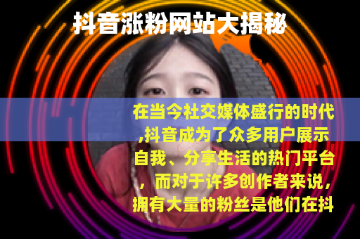 在当今社交媒体盛行的时代,抖音成为了众多用户展示自我、分享生活的热门平台,而对于许多创作者来说,拥有大量的粉丝是他们在抖音上取得成功的关键之一,抖音涨粉网站应运而生,为创作者们提供了一种可能的涨粉途径。