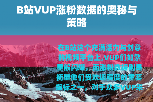 在B站这个充满活力与创意的视频平台上,VUP们如繁星般闪耀,而涨粉数据则是衡量他们受欢迎程度的重要指标之一,对于众多VUP来说,了解和掌握涨粉数据背后的规律和策略,是实现自身发展和突破的关键。