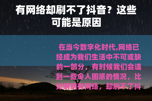 在当今数字化时代,网络已经成为我们生活中不可或缺的一部分,有时候我们会遇到一些令人困惑的情况,比如明明有网络,却刷不了抖音,这究竟是怎么回事呢?