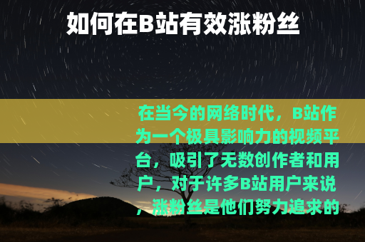 在当今的网络时代,B站作为一个极具影响力的视频平台,吸引了无数创作者和用户,对于许多B站用户来说,涨粉丝是他们努力追求的目标之一,因为粉丝数量不仅代表着受欢迎程度,还能为创作者带来更多的机会和收益。