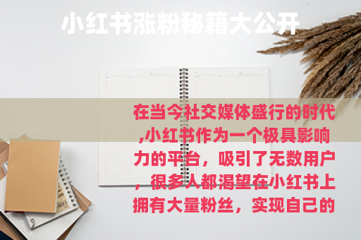 在当今社交媒体盛行的时代,小红书作为一个极具影响力的平台,吸引了无数用户,很多人都渴望在小红书上拥有大量粉丝,实现自己的社交价值和商业目标,小红书咋涨粉呢?下面就为大家分享一些实用的方法。