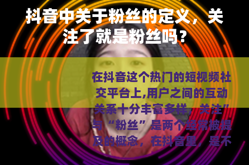 在抖音这个热门的短视频社交平台上,用户之间的互动关系十分丰富多样,关注”与“粉丝”是两个经常被提及的概念,在抖音里,是不是关注了对方就一定是粉丝了呢?