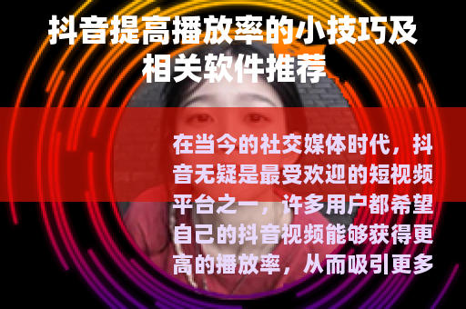 要提高抖音的播放率需要多方面的努力,从内容制作到发布策略,再到与用户的互动以及借助合适的软件工具,每一个环节都至关重要,希望以上这些小技巧和软件推荐能够帮助你在抖音上获得更高的播放率,让你的短视频创作之路更加顺利。