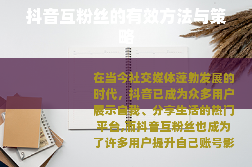 在当今社交媒体蓬勃发展的时代,抖音已成为众多用户展示自我、分享生活的热门平台,而抖音互粉丝也成为了许多用户提升自己账号影响力和人气的一种方式。