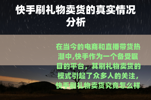 在当今的电商和直播带货热潮中,快手作为一个备受瞩目的平台,其刷礼物卖货的模式引起了众多人的关注,快手刷礼物卖货究竟怎么样呢?
