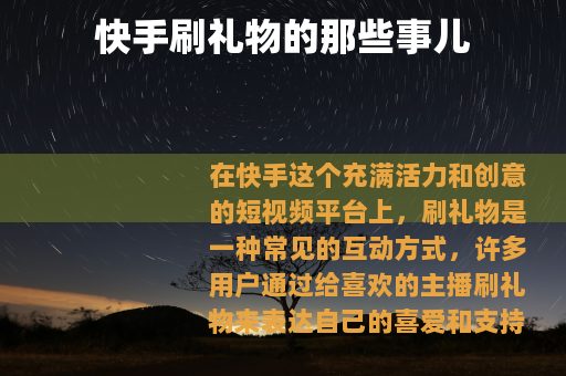 在快手这个充满活力和创意的短视频平台上,刷礼物是一种常见的互动方式,许多用户通过给喜欢的主播刷礼物来表达自己的喜爱和支持,这也成为了快手生态中独特的一部分。