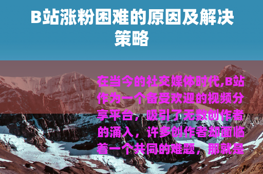 在当今的社交媒体时代,B站作为一个备受欢迎的视频分享平台,吸引了无数创作者的涌入,许多创作者却面临着一个共同的难题,那就是涨粉困难。