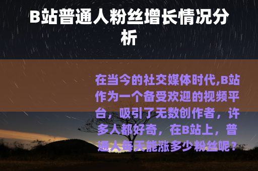 在当今的社交媒体时代,B站作为一个备受欢迎的视频平台,吸引了无数创作者,许多人都好奇,在B站上,普通人每天能涨多少粉丝呢?