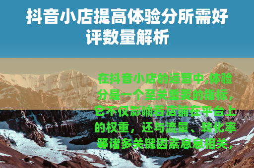 在抖音小店的运营中,体验分是一个至关重要的指标,它不仅影响着店铺在平台上的权重,还与流量、转化率等诸多关键因素息息相关,抖音小店提高体验分究竟需要多少好评呢?