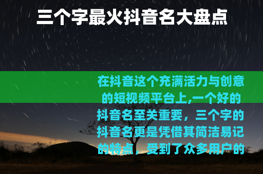 在抖音这个充满活力与创意的短视频平台上,一个好的抖音名至关重要,三个字的抖音名更是凭借其简洁易记的特点,受到了众多用户的喜爱,成为了抖音上的热门选择。