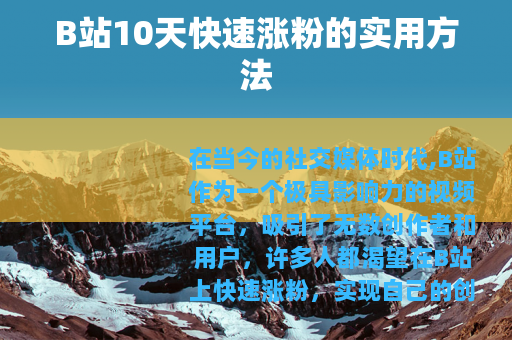 通过以上这些方法的综合运用,你就有机会在B站实现10天涨粉的目标,开启自己在B站的创作之旅,收获更多的粉丝和关注,让自己的创作在这个充满活力的平台上绽放光彩。