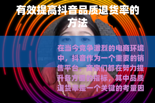 在当今竞争激烈的电商环境中,抖音作为一个重要的销售平台,商家们都在努力提升各方面的指标,其中品质退货率是一个关键的考量因素,如何提高抖音的品质退货率呢?以下是一些实用的方法。