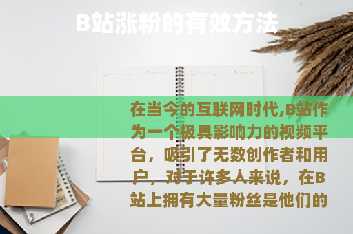 在当今的互联网时代,B站作为一个极具影响力的视频平台,吸引了无数创作者和用户,对于许多人来说,在B站上拥有大量粉丝是他们的梦想,那么究竟该如何在B站涨粉呢?以下是一些实用的方法。 质量是关键,要制作出高质量、有吸引力的视频内容,这意味着你需要有独特的创意和视角,能够为观众带来新鲜和有趣的体验,无论是搞笑、知识科普、美食制作还是游戏攻略等各种类型的视频,都要确保其内容充实、有价值,让观众在观看后能有所收获,这样他们才会更愿意关注你并持续观看你的作品。