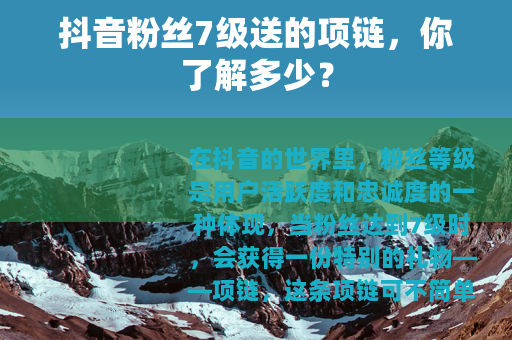 在抖音的世界里,粉丝等级是用户活跃度和忠诚度的一种体现,当粉丝达到7级时,会获得一份特别的礼物——项链,这条项链可不简单,它承载着抖音平台与用户之间独特的情感纽带。