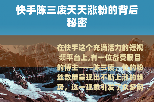 在快手这个充满活力的短视频平台上,有一位备受瞩目的博主——陈三废,他的粉丝数量呈现出不断上涨的趋势,这一现象引发了众多网友的好奇与关注。