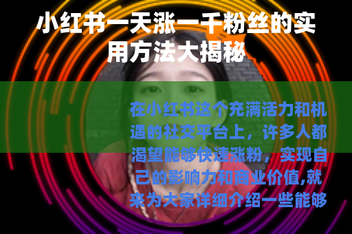 通过以上这些方法的综合运用,坚持不懈地努力,你就有可能在小红书上实现一天涨一千粉丝的目标,打造出一个具有影响力的小红书账号。