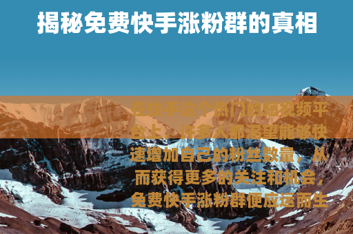 在快手这个热门的短视频平台上,许多人都渴望能够快速增加自己的粉丝数量,从而获得更多的关注和机会,免费快手涨粉群便应运而生,吸引了众多用户的目光。
