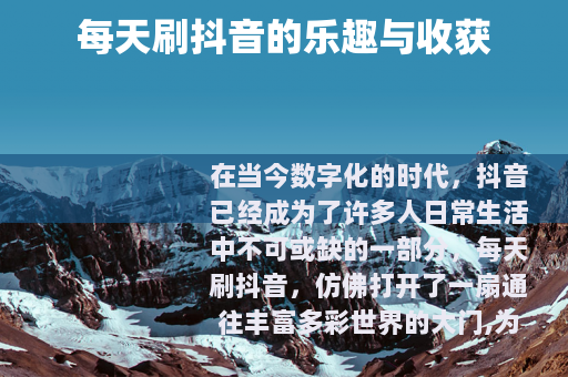 在当今数字化的时代,抖音已经成为了许多人日常生活中不可或缺的一部分,每天刷抖音,仿佛打开了一扇通往丰富多彩世界的大门,为我们带来了无尽的乐趣和意想不到的收获。