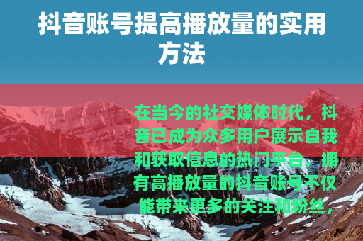 要提高抖音账号的播放量,需要从多个方面入手,不断优化和改进自己的创作和运营策略,持续为用户提供优质、有趣的视频内容,才能在竞争激烈的抖音平台上脱颖而出,获得更多的播放量和关注。