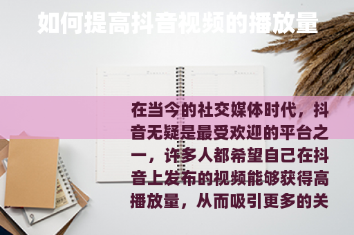 在当今的社交媒体时代,抖音无疑是最受欢迎的平台之一,许多人都希望自己在抖音上发布的视频能够获得高播放量,从而吸引更多的关注和粉丝,究竟该如何提高抖音发的视频的播放量呢?以下是一些实用的方法。 是关键,要确保你的视频内容具有吸引力和独特性,可以从自身的兴趣、特长出发,挖掘一些新颖的主题,或者结合当下的热点话题进行创作,如果你擅长烹饪,那么可以制作一些独特的美食制作视频,展示一些特别的食谱或烹饪技巧,这样能够吸引到对美食感兴趣的用户。