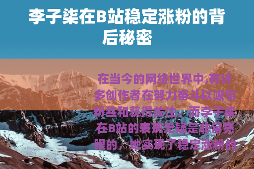 在当今的网络世界中,有许多创作者在努力奋斗以吸引粉丝和获得关注,而李子柒在B站的表现无疑是非常亮眼的,她实现了稳定涨粉的良好态势。