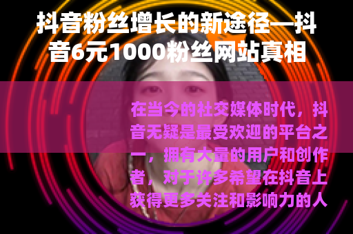 在当今的社交媒体时代,抖音无疑是最受欢迎的平台之一,拥有大量的用户和创作者,对于许多希望在抖音上获得更多关注和影响力的人来说,粉丝数量的增长是一个关键目标,而市场上也出现了各种各样声称可以帮助快速增加抖音粉丝的服务,其中就包括一些所谓的抖音6元1000粉丝网站。