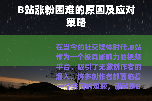 在当今的社交媒体时代,B站作为一个极具影响力的视频平台,吸引了无数创作者的涌入,许多创作者都面临着一个共同的难题,那就是B站涨粉很困难。