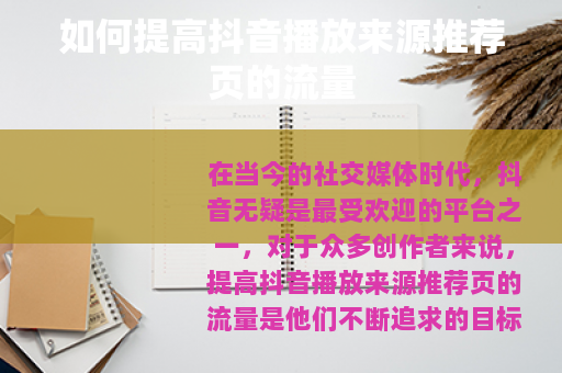 要提高抖音播放来源推荐页的流量,需要从多个方面入手,不断优化自己的内容和运营策略,才能在竞争激烈的抖音平台上获得更多的关注和流量,实现自己的创作目标。