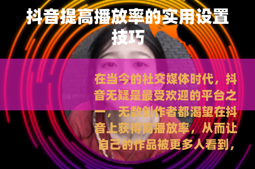 在当今的社交媒体时代,抖音无疑是最受欢迎的平台之一,无数创作者都渴望在抖音上获得高播放率,从而让自己的作品被更多人看到,抖音如何设置才能提高播放率呢?以下是一些实用的技巧。 的质量至关重要,确保你的视频画面清晰、稳定,光线充足,声音清晰可听,一个高质量的视频会给用户留下良好的第一印象,吸引他们继续观看下去,在拍摄前,要精心策划内容,选取有趣、有价值或能引起观众共鸣的主题,可以通过讲故事、分享知识、展示才艺等方式来制作视频,让观众在观看过程中有收获或感受到乐趣。