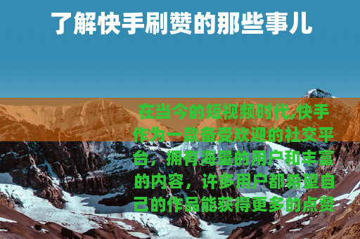 在快手的世界里,我们应该依靠自己的实力和努力去创作和发展,而不是寻求不正当的刷赞手段来获取虚假的繁荣,我们才能在快手这个充满活力的平台上走得更远,收获真正的成功和快乐。