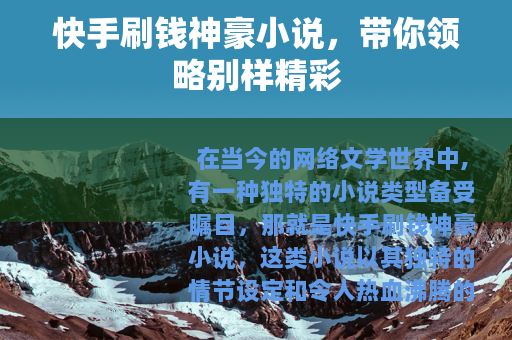 在当今的网络文学世界中,有一种独特的小说类型备受瞩目,那就是快手刷钱神豪小说,这类小说以其独特的情节设定和令人热血沸腾的故事发展,吸引了众多读者的目光。