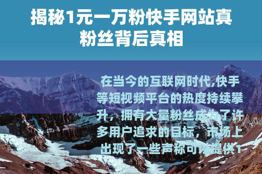 在当今的互联网时代,快手等短视频平台的热度持续攀升,拥有大量粉丝成为了许多用户追求的目标,市场上出现了一些声称可以提供1元一万粉快手网站真粉丝的服务,这看似极具吸引力的背后,实则隐藏着诸多不为人知的秘密。