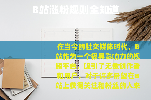 在当今的社交媒体时代,B站作为一个极具影响力的视频平台,吸引了无数创作者和用户,对于许多希望在B站上获得关注和粉丝的人来说,了解B站的涨粉规则是至关重要的。 质量是涨粉的基础,B站的用户对高质量、有创意且有价值的内容有着较高的期待,创作者需要投入时间和精力去制作精良的视频,包括清晰的画面、良好的音质以及吸引人的剪辑,无论是有趣的搞笑视频、深度的知识讲解还是精彩的才艺展示,都要确保能够在众多内容中脱颖而出,让观众在观看后能有所收获,从而愿意关注你的账号。