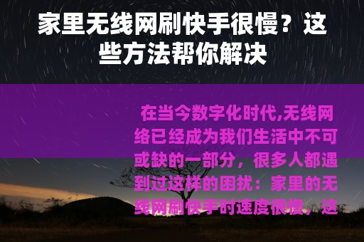 在当今数字化时代,无线网络已经成为我们生活中不可或缺的一部分,很多人都遇到过这样的困扰:家里的无线网刷快手时速度很慢,这严重影响了我们的上网体验,究竟是什么原因导致了这种情况呢?又该如何解决呢?