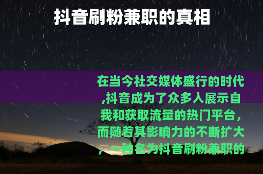 在当今社交媒体盛行的时代,抖音成为了众多人展示自我和获取流量的热门平台,而随着其影响力的不断扩大,一种名为抖音刷粉兼职的现象也悄然兴起。